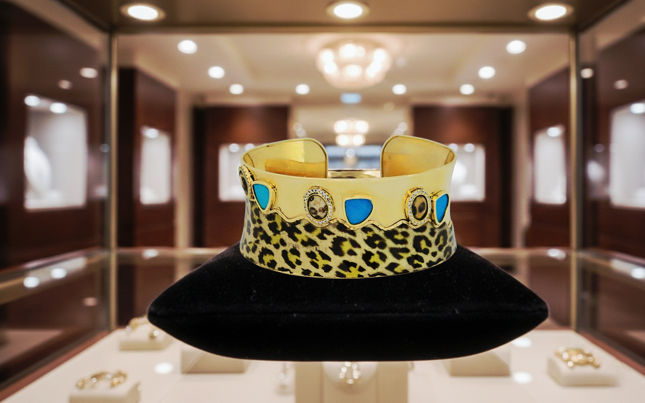 سوار الفهد ذهب عيار 18 مع الأحجار والاماس