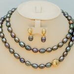 Overall, the set combines the classic elegance of black pearls with the modern touch of gold and diamonds, making it a great piece for special occasions.